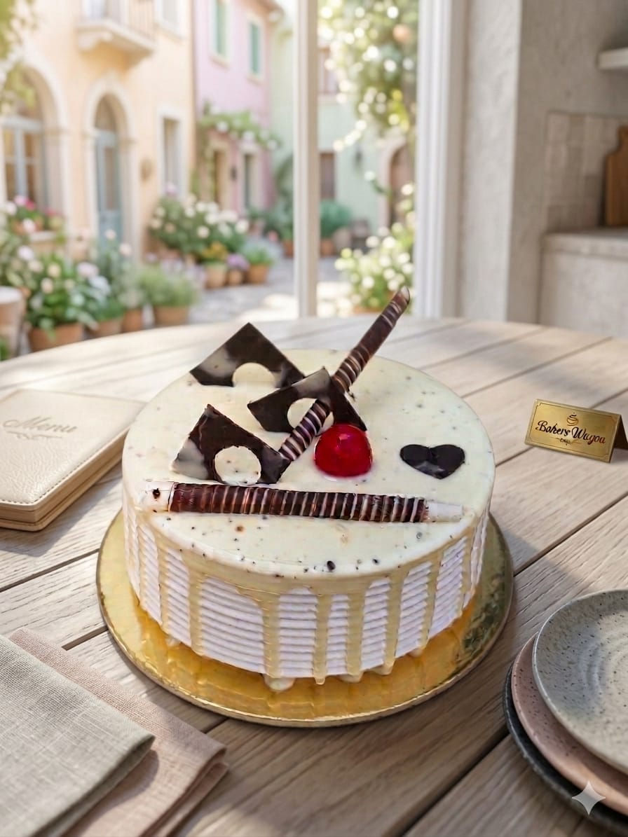 Indulge in one of the best eggless cakes in town. Our Ivory Bliss features a velvety sponge layered with premium cream and rich chocolate drips, crafted for pure elegance.